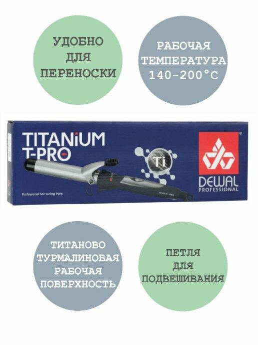 Плойка для волос титаново-турмалиновая Dewal 03-38T TitaniumT Pro с терморегулятором d 38 мм 75 Ватт 140-200 C