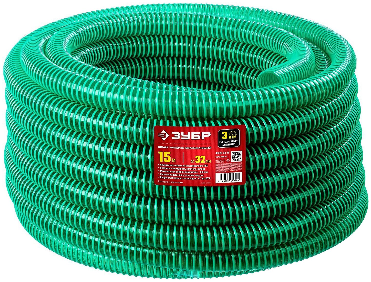 ЗУБР 32 мм x 15 м, 3 атм, со спиралью ПВХ, напорно-всасывающий шланг (40325-32-15)
