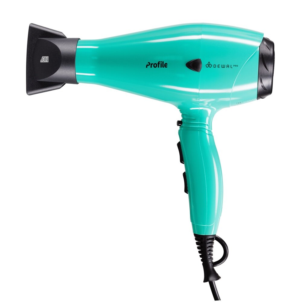 Фен DEWAL PROFILE, аквамарин, вес 570гр, 2200Вт, ионизация, 2 насадки, провод 3м