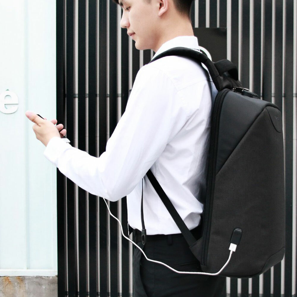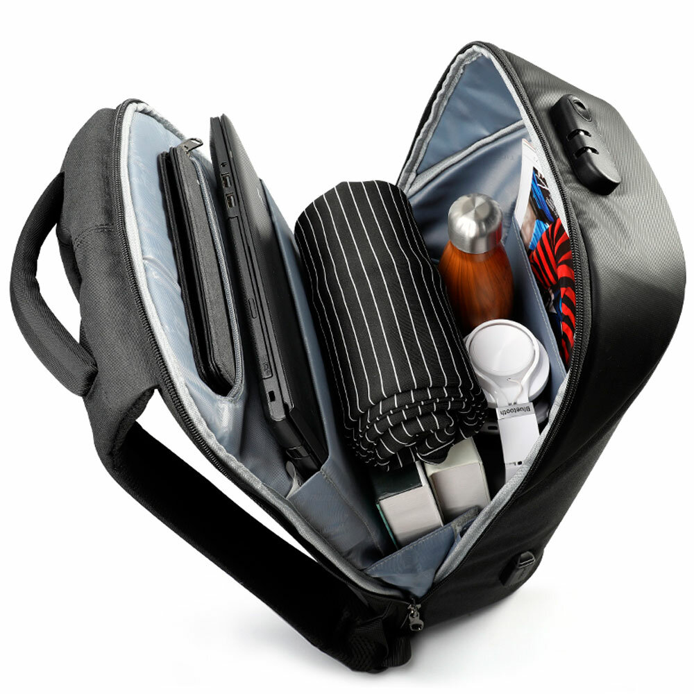 в рюкзак все помещается приятный бонус кодовый замок и достоинства подзаряжать телефон или другие мелкие гаджеты |