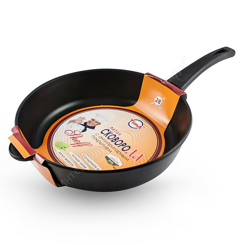 Сковорода TimA "Шеф" 2810П, антипригарное покрытие, термоизолированная бакелитовая ручка, черная