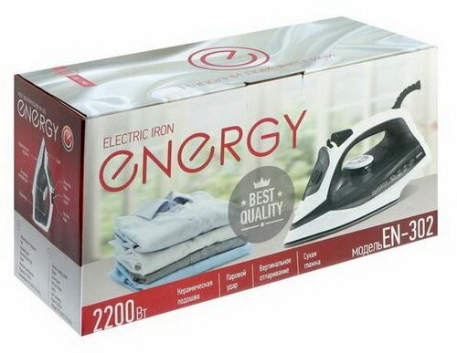 Energy Утюг ENERGY EN-302, 1800-2200 Вт, керамическая подошва, 300 мл, серый