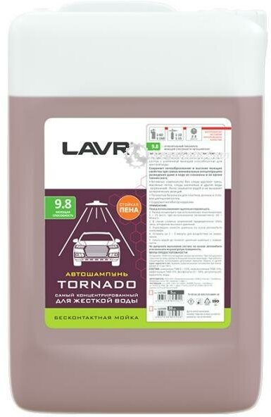 LAVR Автошампунь Tornado Для жесткой воды 9.8 Концентрат 1:60 - 160, 5 л LAVR / арт. LN2342 - (1 шт)