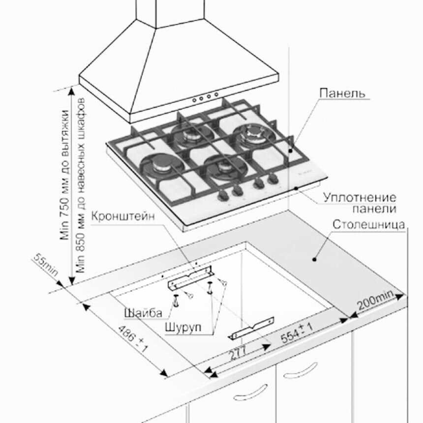 | Ширина для встраивания | 55 см |