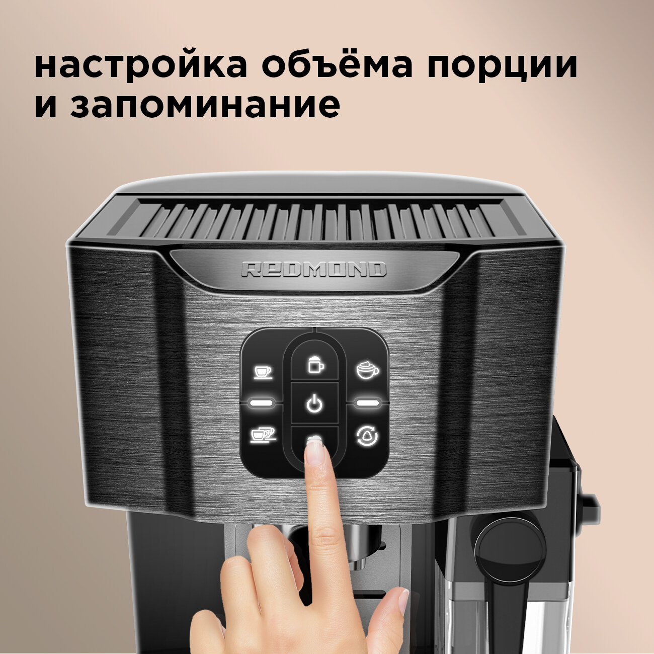 Выбирали с мужем кофеварку на подарок и остановились на этом варианте, мы сами техникой редмонд пользуемся давно, так что решили брать именно этого бренда. По размеру кофеварка средняя, не так уж и много требует места, понравился её функционал, есть всё для вкусного и качественного кофе. Для бокалов есть подогрев и даже небольшая подставка для небольших кофейных чашек. Давление у кофеварки 15 бар, капучино готовить можно. Имениннику подарок понравился.