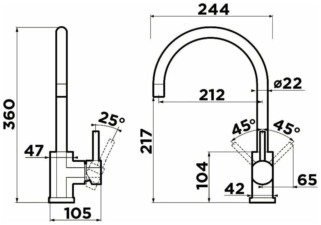 | Высота излива | 217 мм |