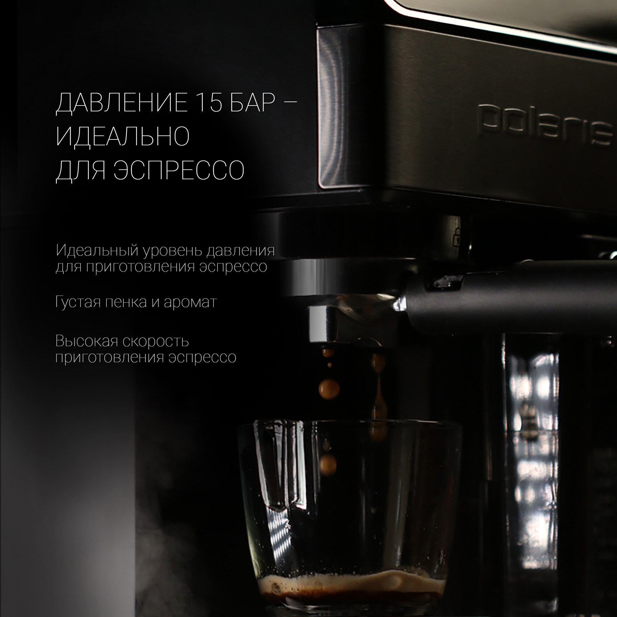 Кофеварка Polaris PCM 1535E, рожковая, черный / серебристый
