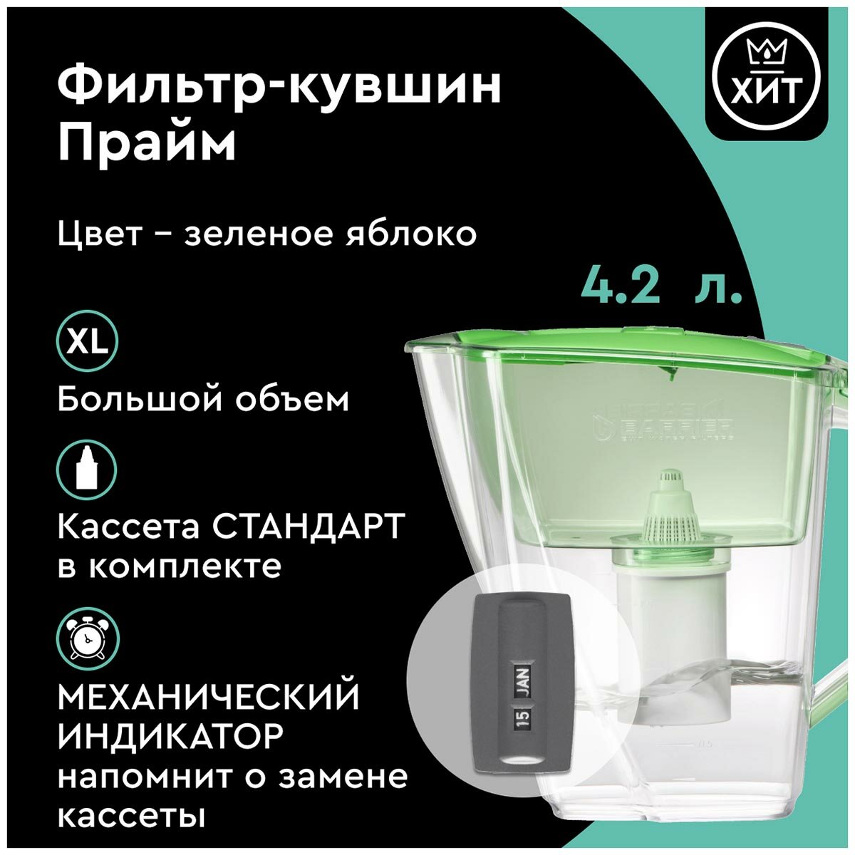 Фильтр -кувшин для очистки воды БАРЬЕР Прайм 4,2 л, цвет зеленое яблоко