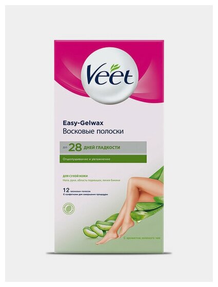 Veet, полоски для депиляции (для сухой кожи) Easy Gel-wax (с ароматом зеленого чая), 12 шт.