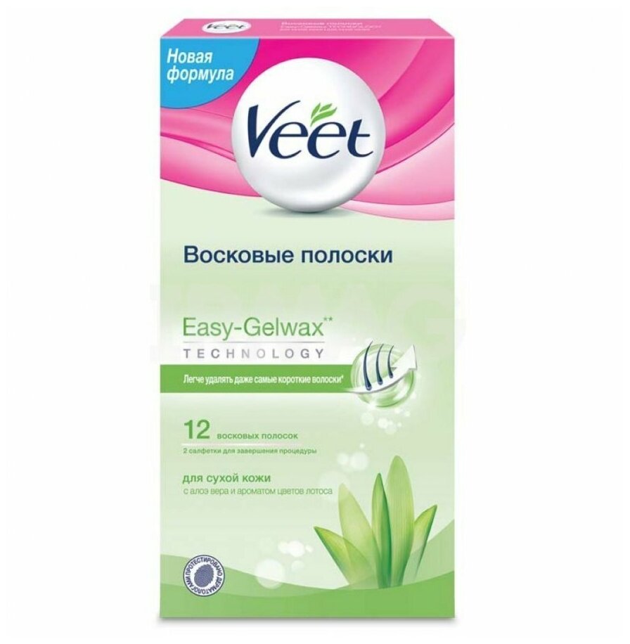 Купить Veet Восковые полоски Easy Gelwax с алоэ вера и ароматом лотоса для сухой кожи 12 шт.