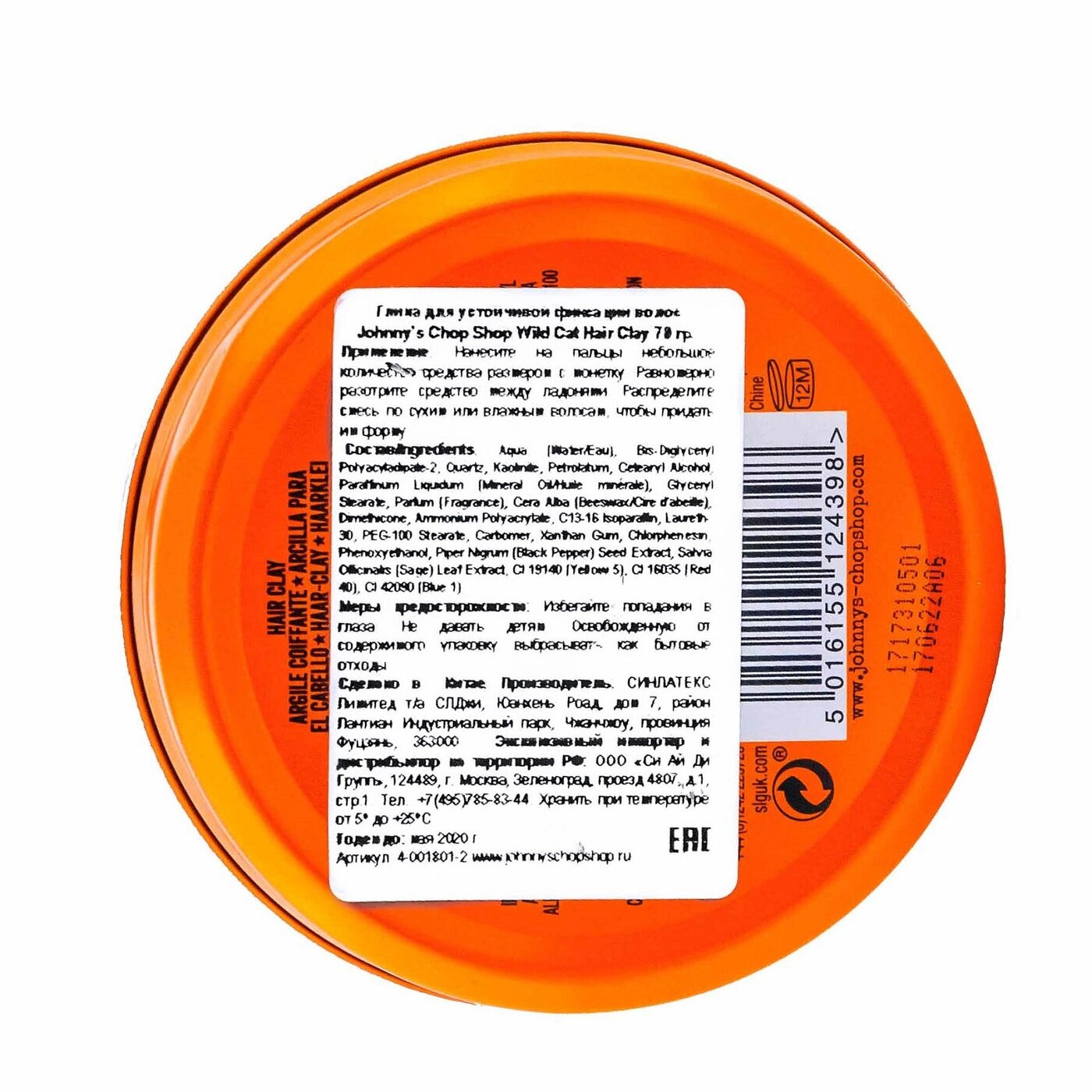 JOHNNY'S CHOP SHOP Глина Wild Cat Hair Clay, сильная фиксация, 70 г