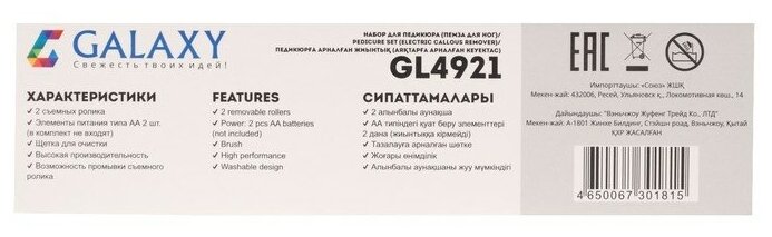 Электрическая роликовая пилка GL 4921, 2 насадки, от 2хАА
