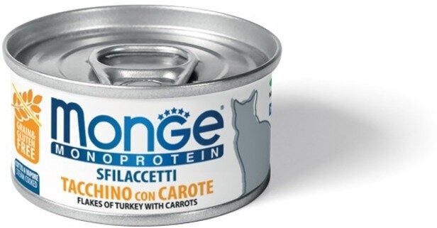 Консервы Monge Cat Monoprotein мясные хлопья для кошек с индейкой и морковью 80г
