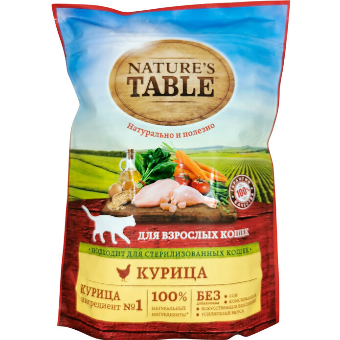 Купить Сухой корм для взрослых кошек Nature`s Table с курицей, 650г