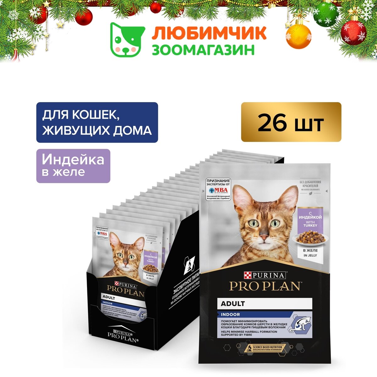 PRO PLAN INDOOR для взрослых кошек, живущих дома, с индейкой в желе пауч 85 гр х 26 шт