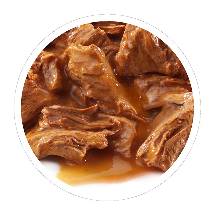 Консистенция корма также порадовала - самые настоящие мясные кусочки, и много-много соуса, который очень нравится коту. У кусочков средний размер, жевать их коту вполне удобно. У котика есть особенности в области ЖКТ, но данный корм никак не повлиял на пищеварение - негативных реакций не появилось, Персик здоров и счастлив)) |
