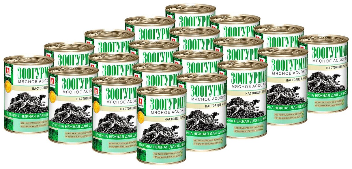 Зоогурман для щенков Мясное ассорти Телятина нежная, консервы 350г (20 банок)