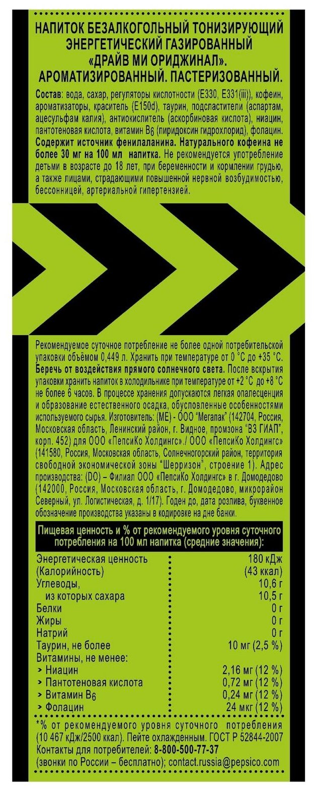Энергетический напиток Drive Me 0.449л интересное: