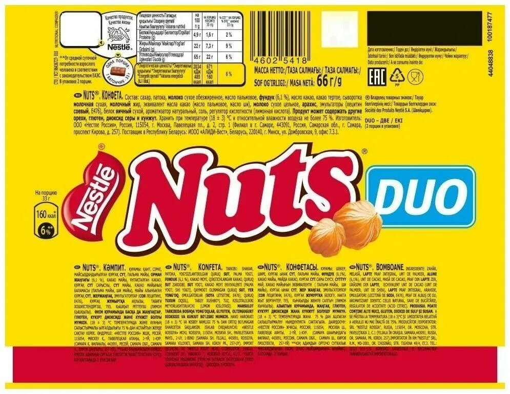 Батончик Nuts Duo, 66 г, коробка (24 шт.)