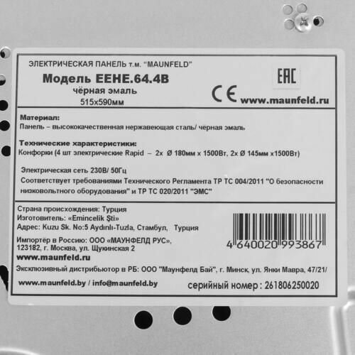 Купить Электрическая варочная панель MAUNFELD EEHE.64.4B