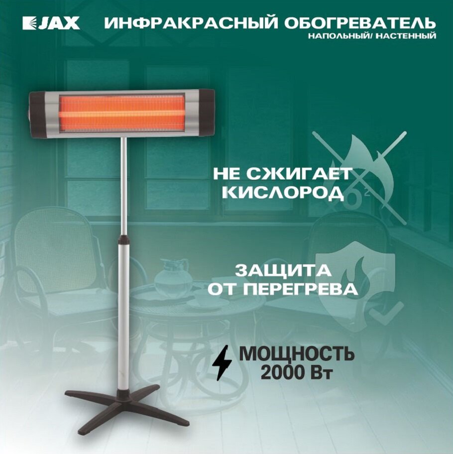 Инфракрасный обогреватель JAX JHSP-2000, телескопическая подставка в комплекте