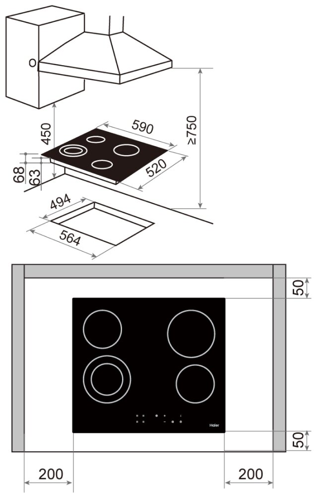 Haier Встраиваемая электрическая панель HHX-C64DVB