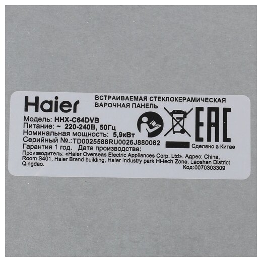 СохранитьЭлектрическая варочная панель Haier HHX-C64DVB интересное: