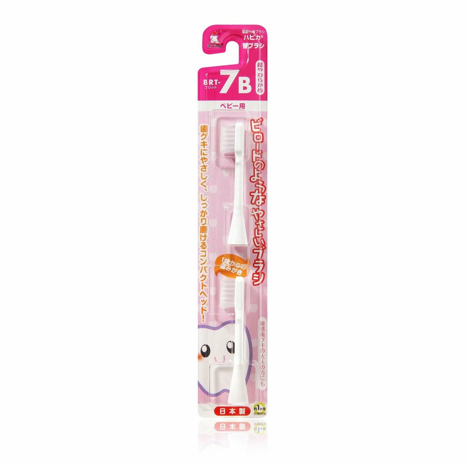 Cменные насадки для электрической зубной щетки Hapica BRT-7B для детей 1-6 лет, 2 шт. Ультрамягкие щетинки. Подходят всем щеткам Hapica