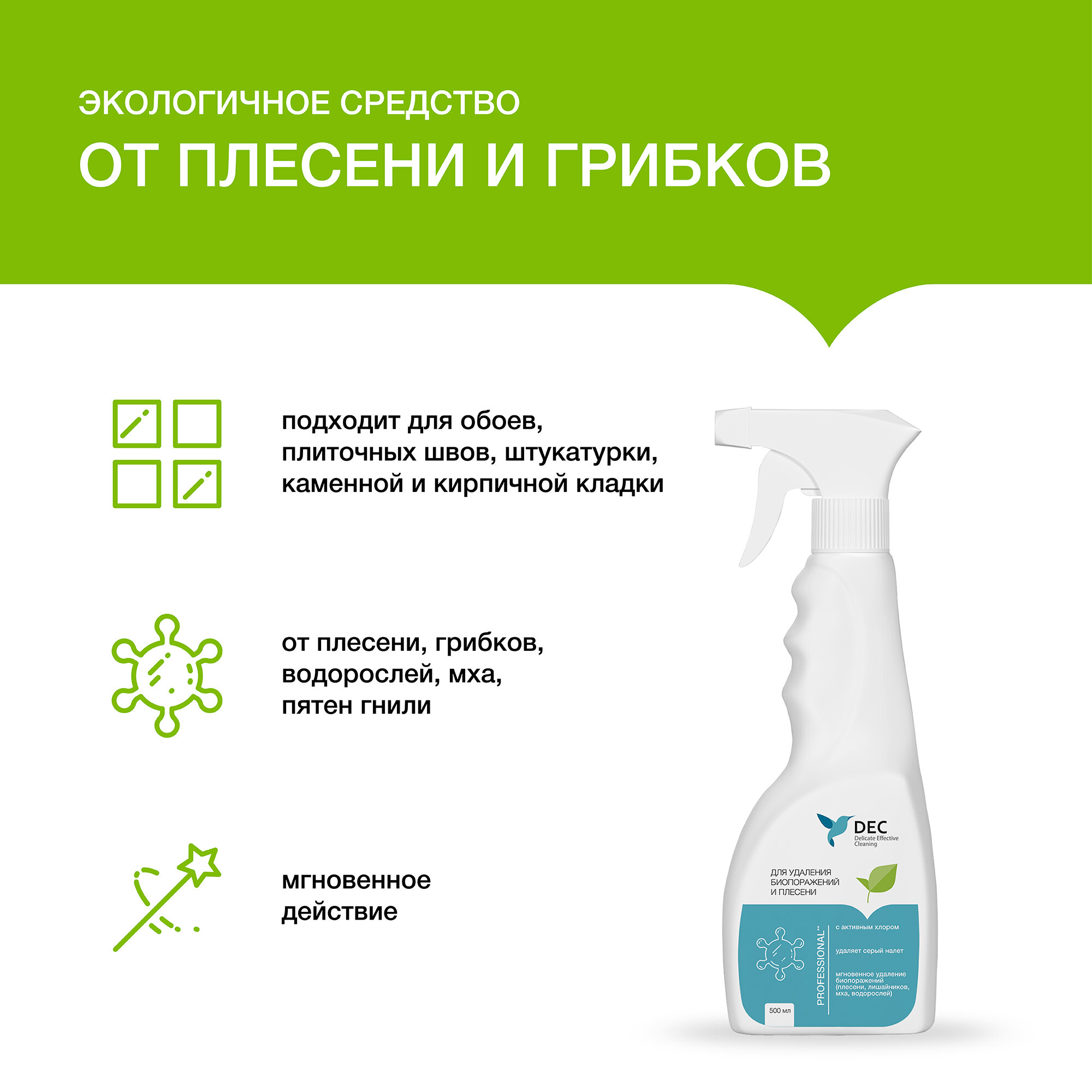 DEC Высокоэффективное средство для удаления плесени и других биопоражений (0,5 л) интересное: