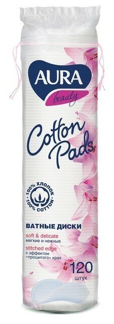 AURA Ватные диски Aura, прошитые, 120 шт