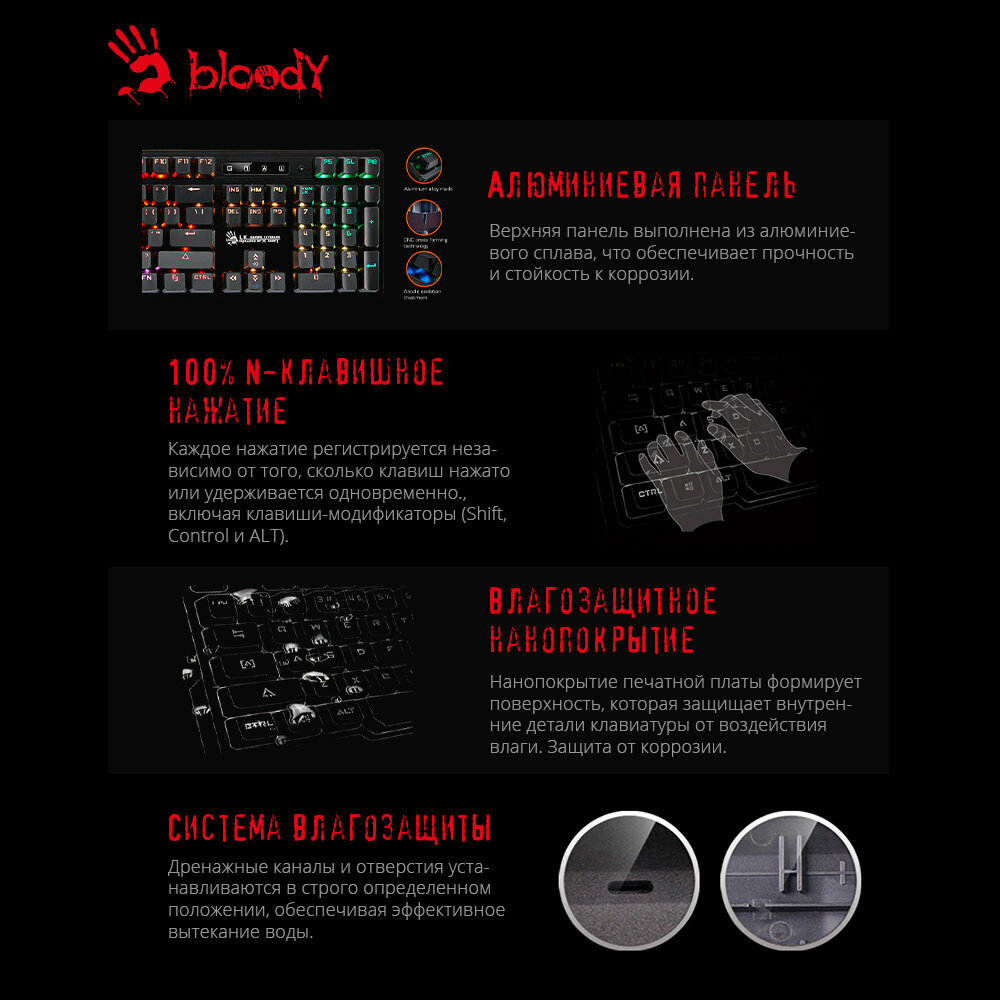 Клавиатура A4 Bloody B820R Blue S механическая черный USB LED интересное: