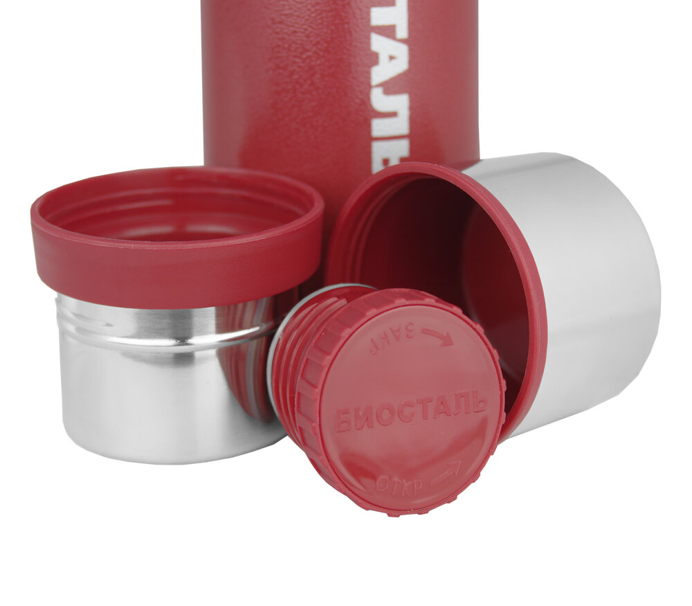 Термос "биосталь-охота" с узкой горл.,2 чашки, красный, 1.2 л. NBА-1200R