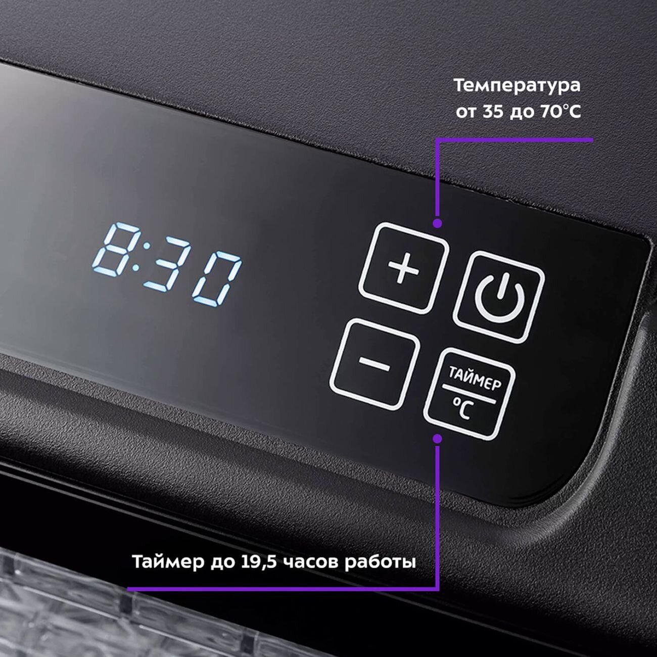 | Плюсы: | Первое что выгодно отличает данную сушилку от многих других предложений на маркете, это её конструктивное исполнение, с обычной дверцей и 6 рядами поддонов. Как следствие, удобная загрузка и контроль всего процесса сушки. Достаточная мощность в 500 Вт, температурный режим от 35 до 70 °С и временем работы от 30 минут до почти 20 часов. Внутри на мой взгляд пластик хорошего качества, не пахнет и по идее не должен расплавится от 70 градусной температуры. Управление удобное без заморочек, можно менять режим работы в процессе сушки не останавливая сушку.