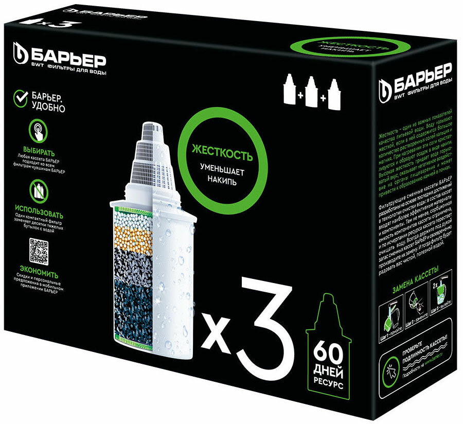 БАРЬЕР Жесткость, комплект кассет для фильтров-кувшинов, защищает от накипи, 3 шт