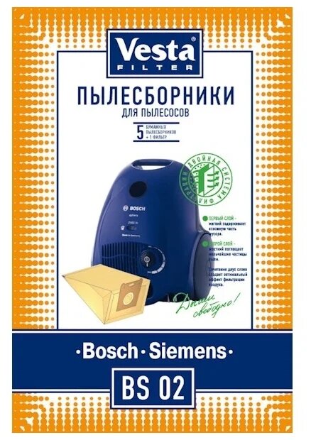 Бумажные пылесборники Vesta Filter BS 02 для пылесосов BOSCH, SIEMENS тип BBZ41FG
