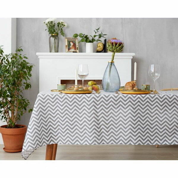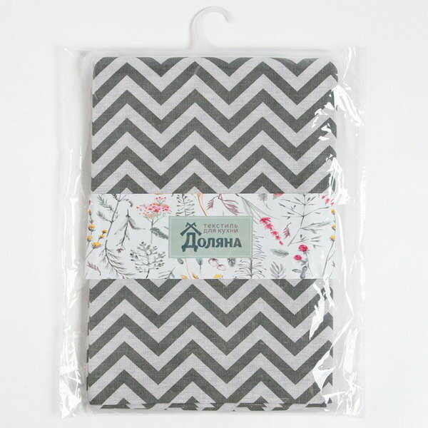 Набор Доляна скатерть 145х200см/салфетки 40х40см 4шт, Зигзаг сер, 100%пэ, рогожка 200 гр/м Доляна 35 .