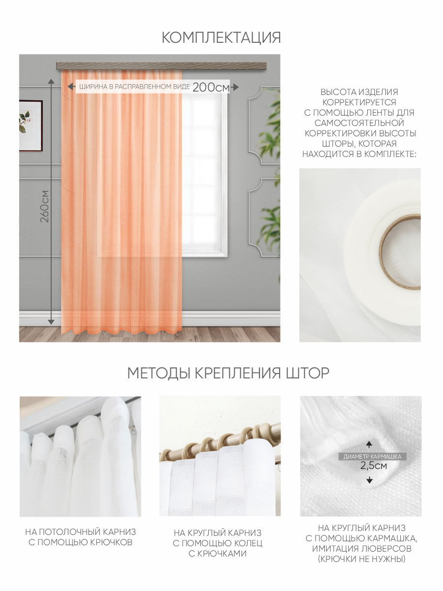 СохранитьШтора вуаль Witerra 200*260 см персиковый -1шт интересное: