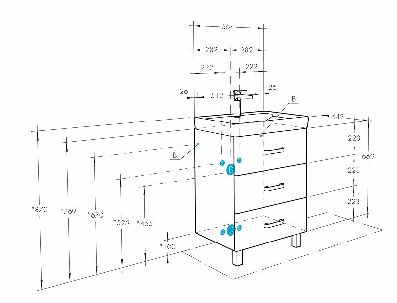 Тумба для ванной комнаты квадро 1-65