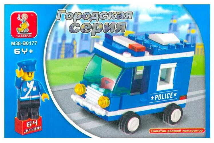 Sluban Конструктор Полицейская машина 64 детали M38-B0177 с 6 лет