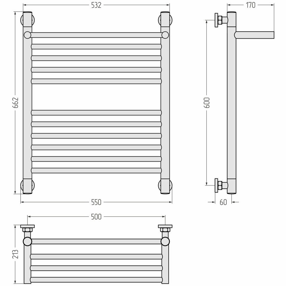 Водяной полотенцесушитель Сунержа 00-0223-6050 "БОГЕМА+" Полотенцесушитель водяной 1П 600х500 мм, без покрытия
