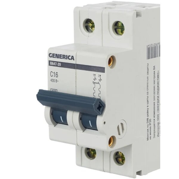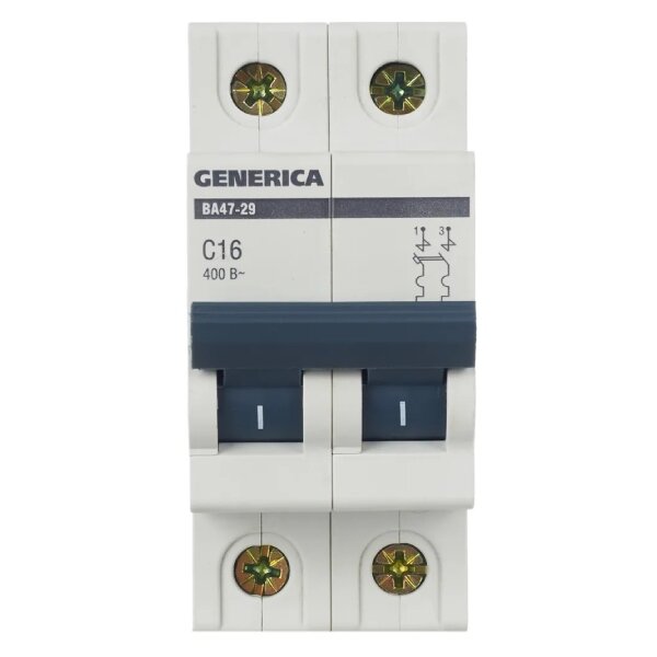 Выключатель автоматический Generica ВА47-29, 2Р, 16 А, 4,5 кА, тип С
