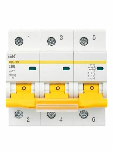 Автоматический выключатель модульный IEK ВА47-100 трехполюсный 3п 80А C 10кA AC/DC (перемен./постоян.) (MVA40-3-080-C)