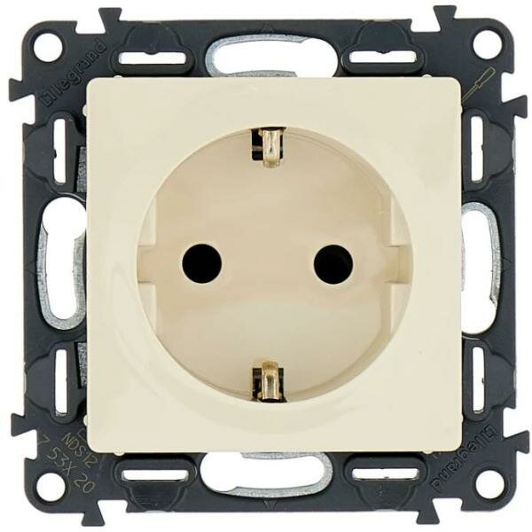 Механизм розетки 1-м СП Valena Life 16А IP20 250В 2P+E защ. шторки безвинт. клеммы с лицев. панелью сл. кость Leg, LEGRAND 753520 (1 шт.)