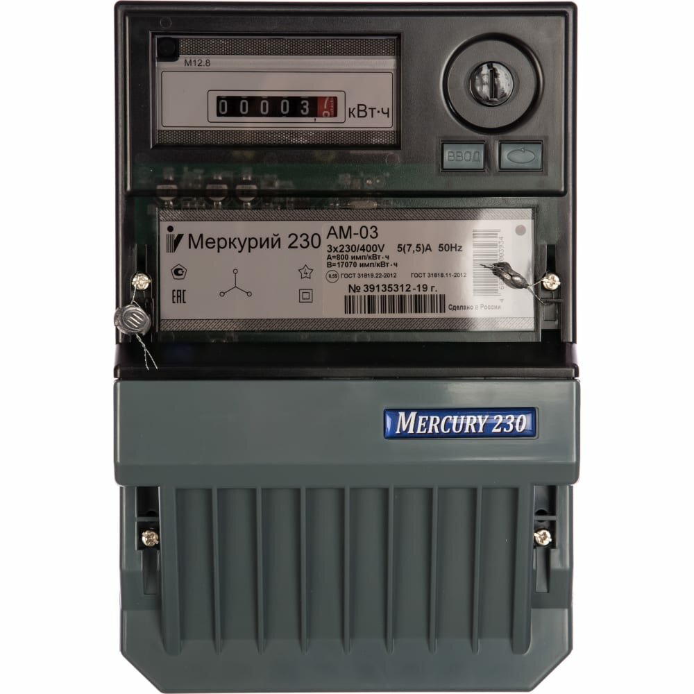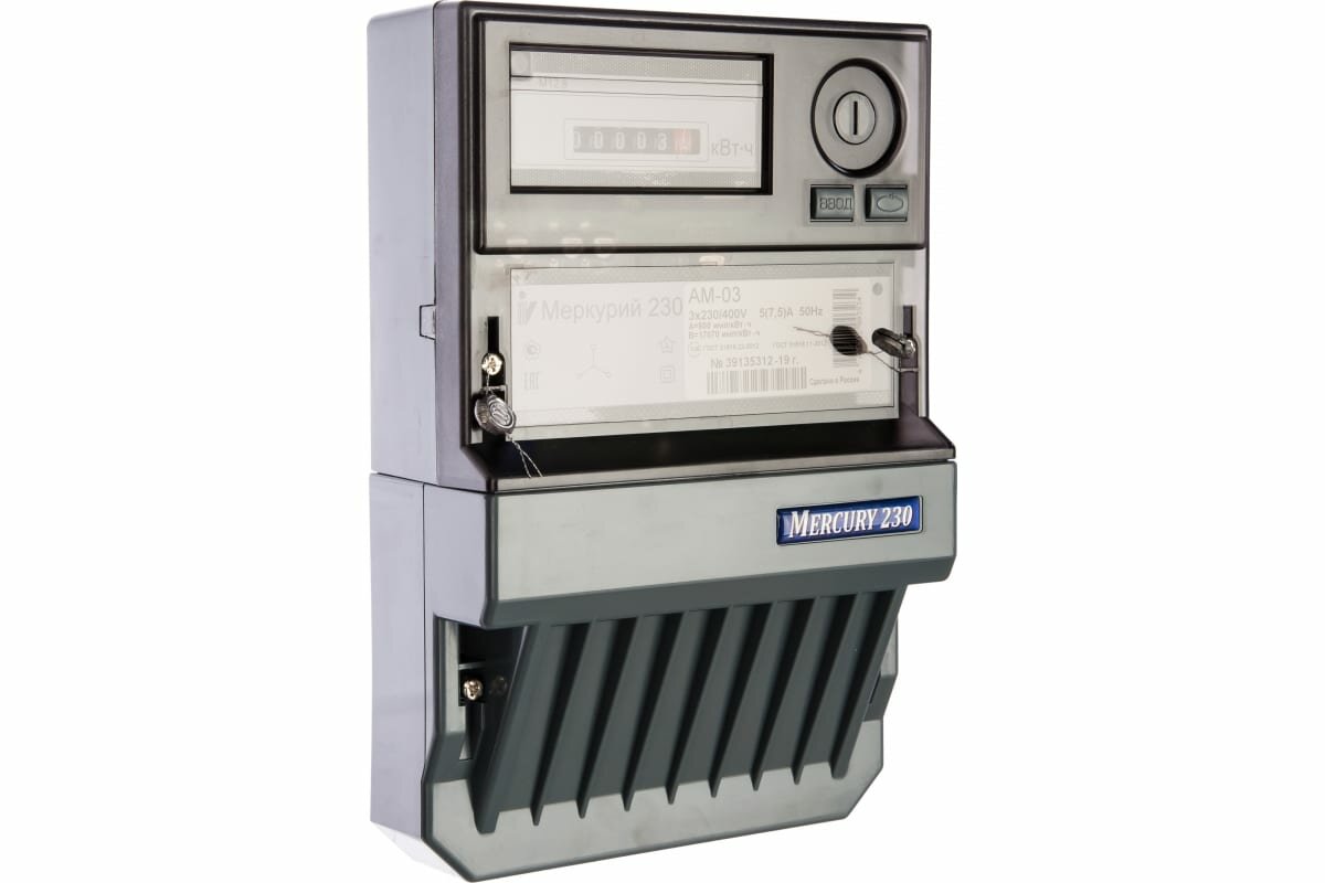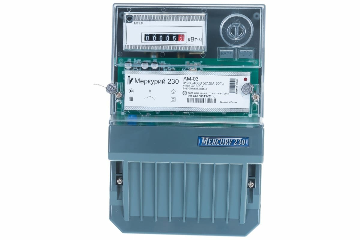 Электросчетчик Меркурий 230 АМ-03 3*230/400В; 5(7,5)А; кл. т. 0,5S; 1 тариф; Имп. выход; ОУ; 3 винта интересное: