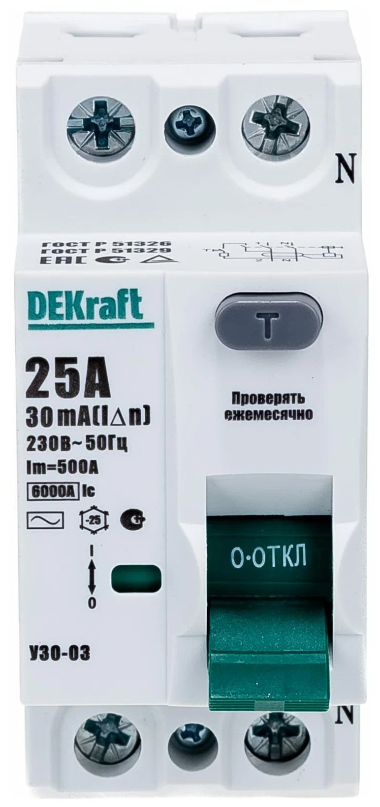 Выключатель дифференциального тока DEKraft 2P 25А 30мА тип AC 6кА УЗО-03 14207DEK . интересное:
