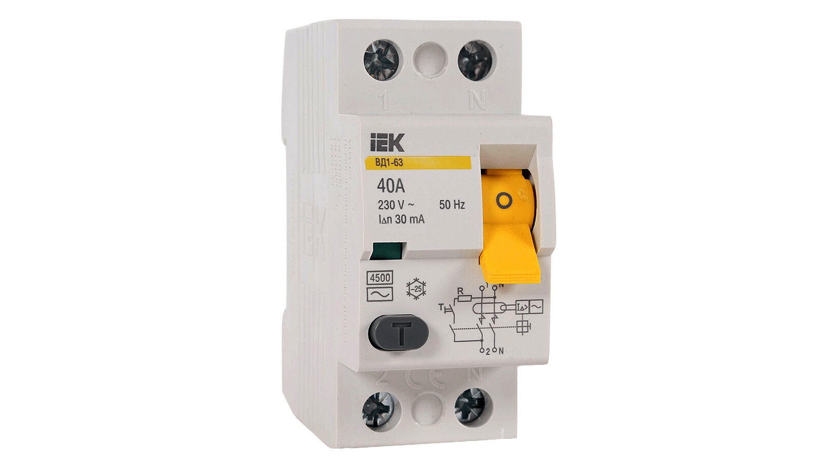 Выключатель дифференциальный IEK (40 А, 1 фаза, MDV10-2-040-030)