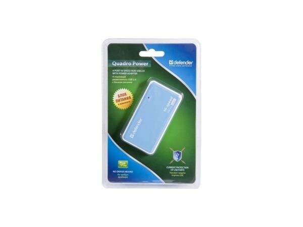 USB-концентратор Defender Quadro Power (83503), разъемов: 4, синий