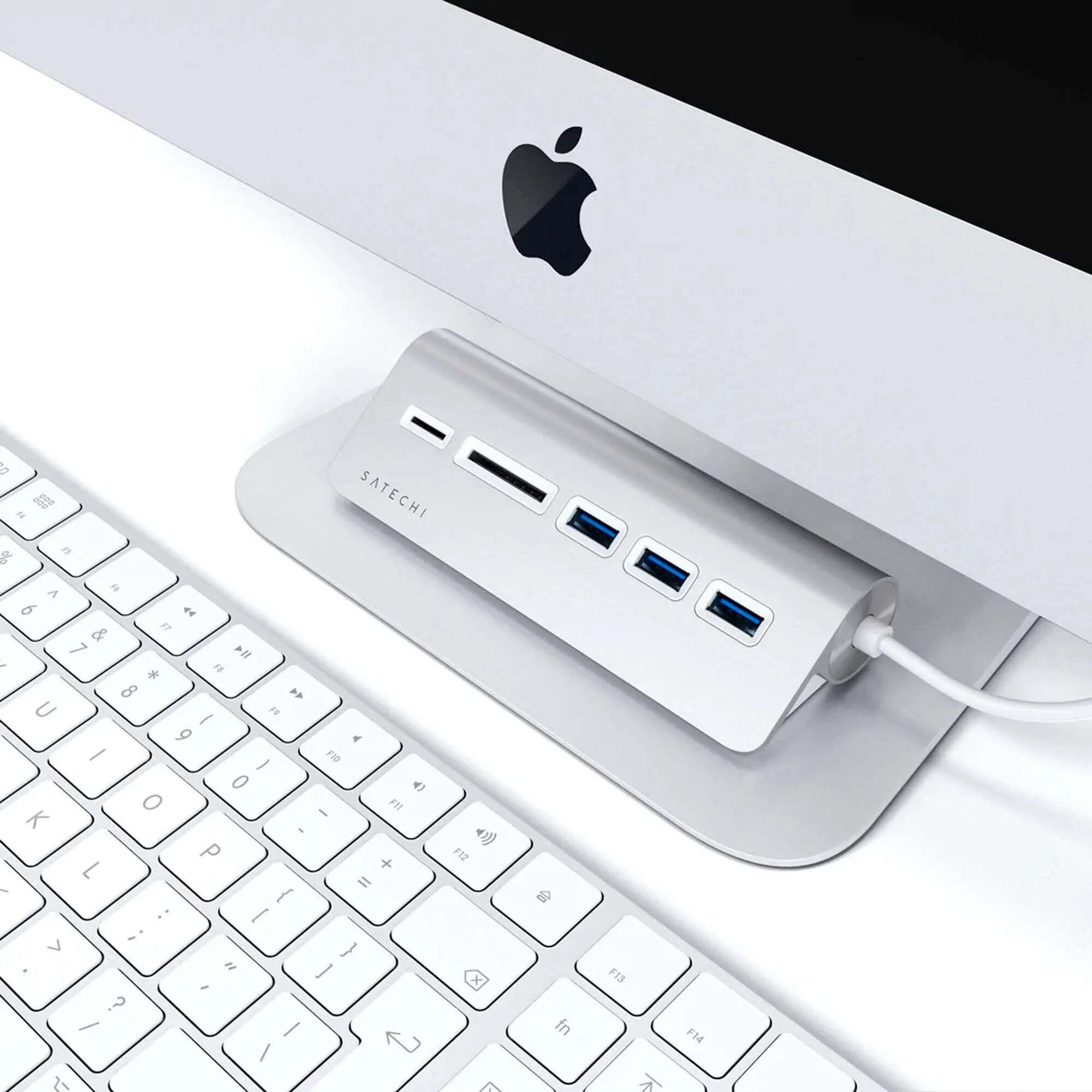 Купить USB-концентратор Satechi Type-C Aluminum USB 3.0 Hub & Micro/SD Card Reader, разъемов: 3, silver