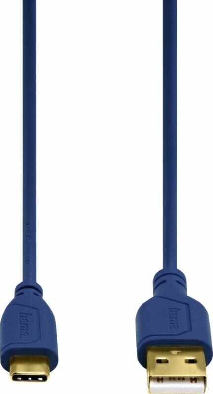 Кабель HAMA Flexi-Slim, USB Type-C (m) - USB (m), 0.75м, синий [135785]