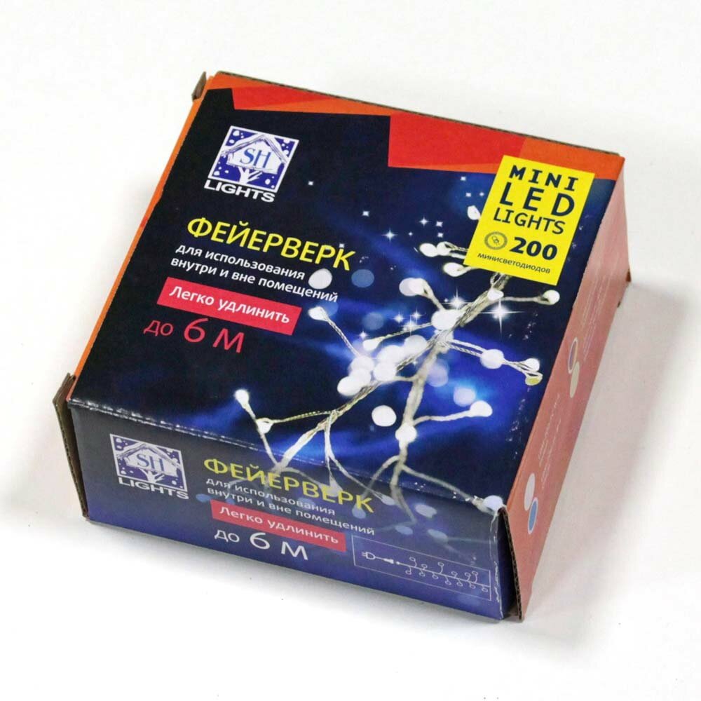 Гирлянда фейерверк SH LIGHTS 200 LED белый 2 м